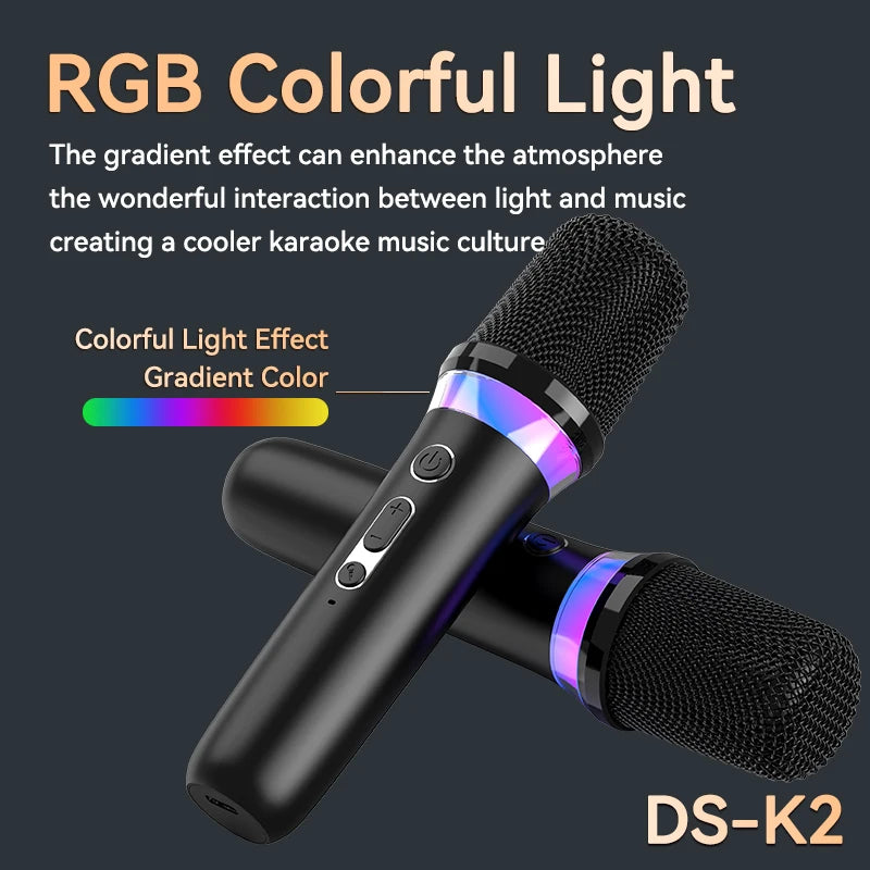 Features5: K12 Dual Microphone Karaoke Bluetooth Speaker RGB Light Two 5W Speakers Sound Subwoofer Boombox Support Multiple Input Modes